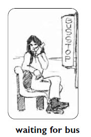 Listen, look at the pictures and read the phrases. Look at the numbers under the pictures. Choose the correct sentences to put Natasha's trip to school in order. Click "Check" to check your answers.